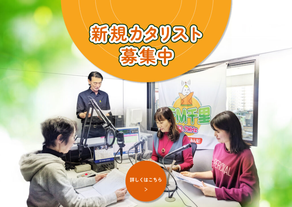 News お知らせ お知らせ・イベント一覧 2025.12.29 年末年始のご案内 2025.12.26 2026年度『新規カタリスト』募集のお知らせ 2025.12.23 年末年始特別編成 2025.12.23 2025年12月23日『ごきげん千里837(やぁ、みんな)』番組変更のお知らせ Senri Diary 放送局日記 2026.01.14 2026年1月17日(土)ANDES MODE HEART MUSIC あ) ANDES MODE HEART MUSIC, ほ) 放送局日記 2026.01.12 2026年1月10日(土)♫あつ子と楽しむクラシック♫ あ)あつ子と楽しむクラシック♪, ほ) 放送局日記 2026.01.10 2026年1月10日(土)東哲平のMONO MUSIC QUEST あ) 東哲平のMMQ, ほ) 放送局日記 2026.01.10 2026年1月10日(土) ムードミュージックをあなたに ほ) 放送局日記, ム) ムードミュージックをあなたに 2026.01.10 2026年1月9日(金)デポルトナビゲーション で) デポルトナビゲーション, ほ) 放送局日記 2026.01.10 2026年1月9日(金)山田ひろしのGOGOフライデー G)山田ひろしのGOGOフライデー, ほ) 放送局日記 もっと見る Request 番組へのメッセージ・リクエスト ラジオネーム 番組名 FM千里でかけてほしいアーティストと曲名 メッセージ プレゼントご応募される方 送信 Facebook FM千里 朗読やラジオドラマの 出演『カタリスト』 FM千里 インスタグラム FM千里 X(旧Twitter) FM千里 Facebook FM千里 Youtube FM千里ストア