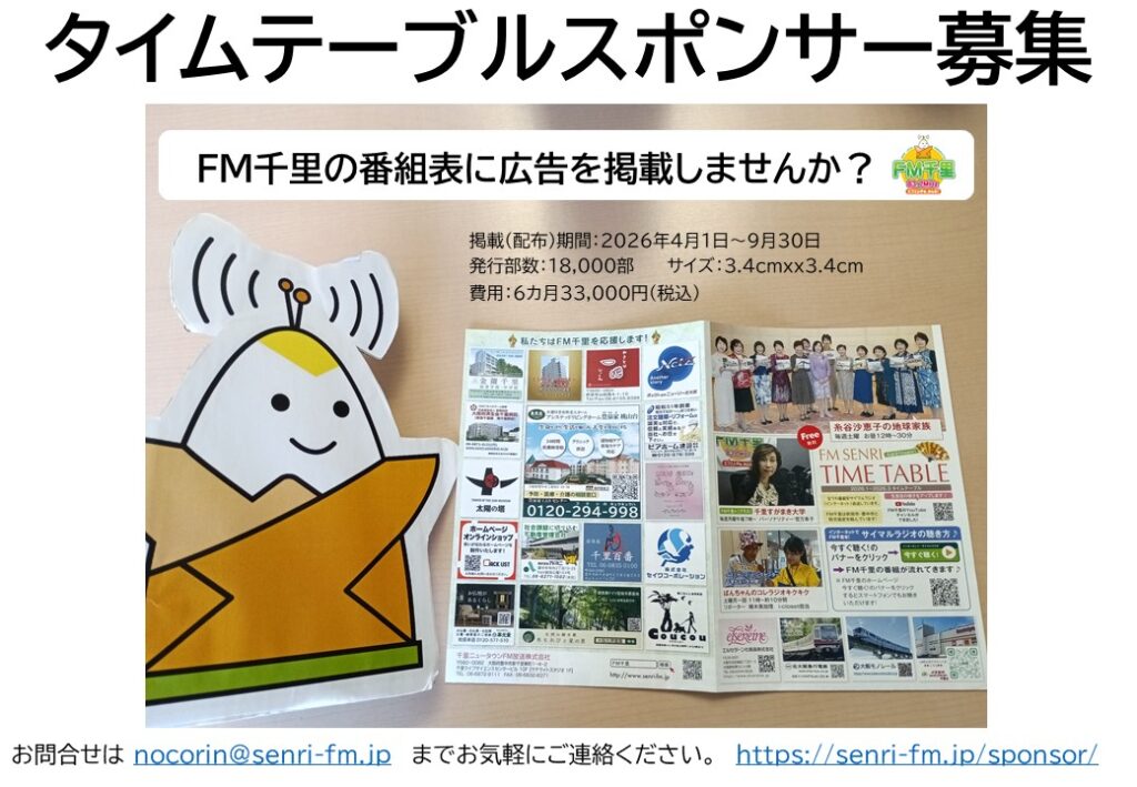お問合せは nocorin@senri-fm.jp までお気軽にご連絡ください。