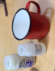 写真は、名水めぐりの相棒と呼べる「ばんばさん愛用のコップ」と「名水を保存する容器」です。