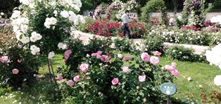 春のバラは花の大きさと色の鮮やかさが特徴です。大輪のものは手のひらサイズ程もありますし、オレンジ、ムラサキ、ピンク、赤、白バラなど、笑顔溢れる空間でした。