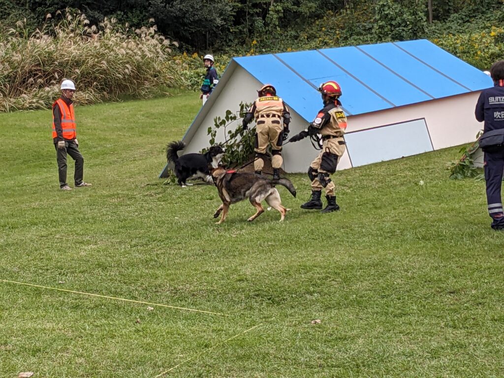 災害救助犬も出動し、倒壊家屋に人が閉じ込められているかを確認します。