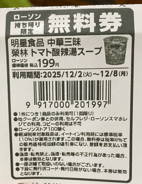 ローソンでは一個買うと「トマト酸辣湯スープ」が一個貰えるという