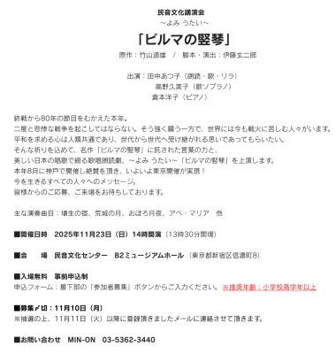 今日はビルマの竪琴の公演日のお知らせをさせていただきました。