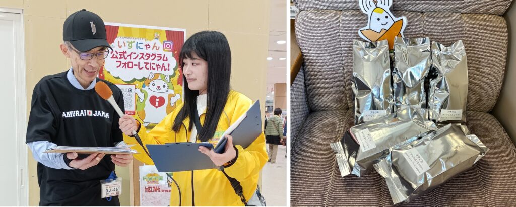 お店で2000円以上購入された上で「FM千里のラジオ聞きました」「ばんちゃんのラジオ聞いてます」など