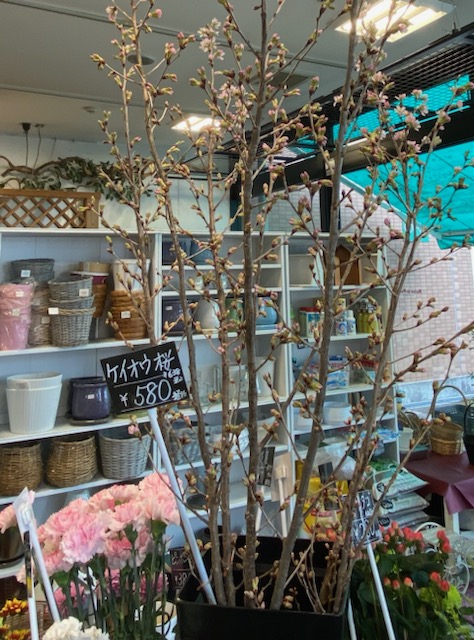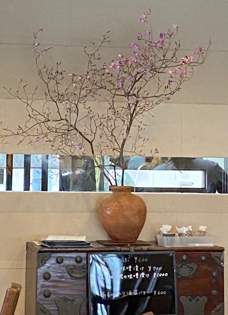 東豊中にある蕎麦屋 木田さんには、大きな啓翁桜が飾られていました。
